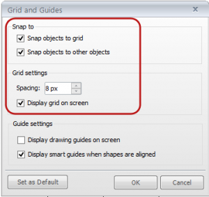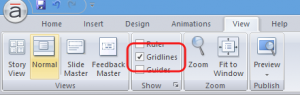 قم بالضغط على السهم الصغير تحت ال gridlines لكي تفتح نافذة ال grid and guides والتي تحتوي على خصائص ال grid (الشبكية)